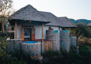 Voor wie meer comfort wenst, biedt de lodge prachtig ontworpen chalets die elegantie en gemak combineren. Elke suite heeft airconditioning en beschikt over een extra groot bed en een groot tweepersoonsbed, waardoor er voldoende ruimte is voor gezinnen, stellen of vrienden die samen reizen. De ensuite-badkamer is voorzien van een douche, terwijl een kledingkast en verwarming voor extra comfort zorgen. Grote ramen bieden een spectaculair uitzicht op het meer en het omliggende landschap, waardoor gasten vanuit hun kamer kunnen genieten van de schoonheid van de Riftvallei.