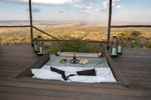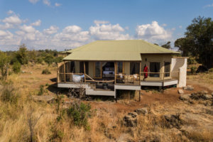 Het verhoogde hoofdgebouw biedt een grote lounge en bar, binnen- en buitendiners, een spa en een zwembad. Hier geniet je na een volle safaridag van het indrukwekkende uitzicht.