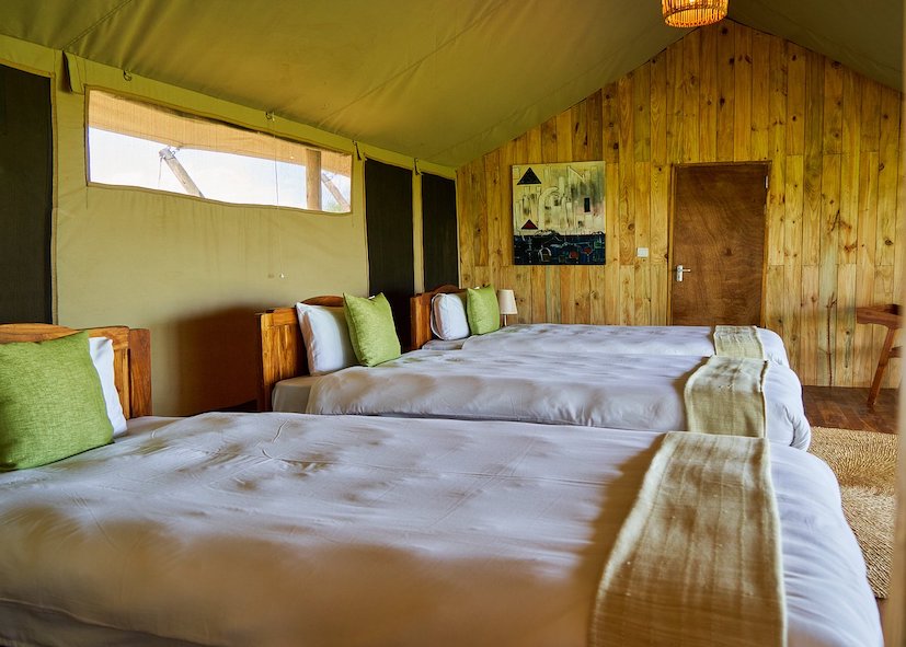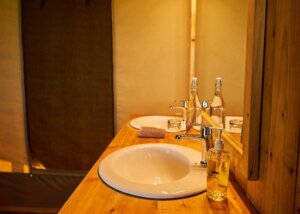 Accommodaties zijn beschikbaar als tweepersoons-, driepersoons- of familietent, met privébadkamers inclusief warme en koude douche en toilet. De tenten hebben elektriciteit en comfortabele grote bedden met oplaadpunten. Er is ook een bar en lounge voor ontspanning en socializen.