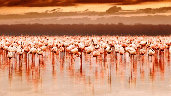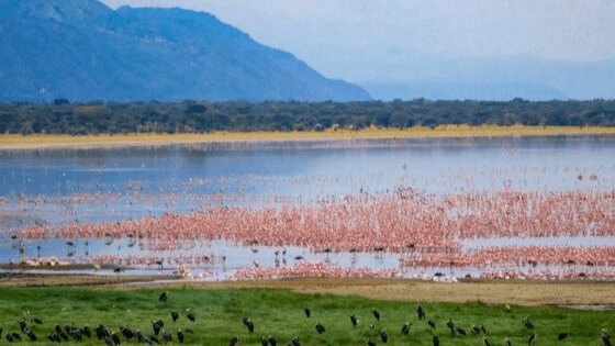 Tijdens de regenseizoenen (november/december en maart/april/mei) kan het meer zelf tot 60% van de totale oppervlakte van het park beslaan – een enorme 231 km². Tijdens deze maanden trekt het alkalische water van het meer een verscheidenheid aan migrerende watervogels aan, waaronder de beroemde roze flamingo’s!