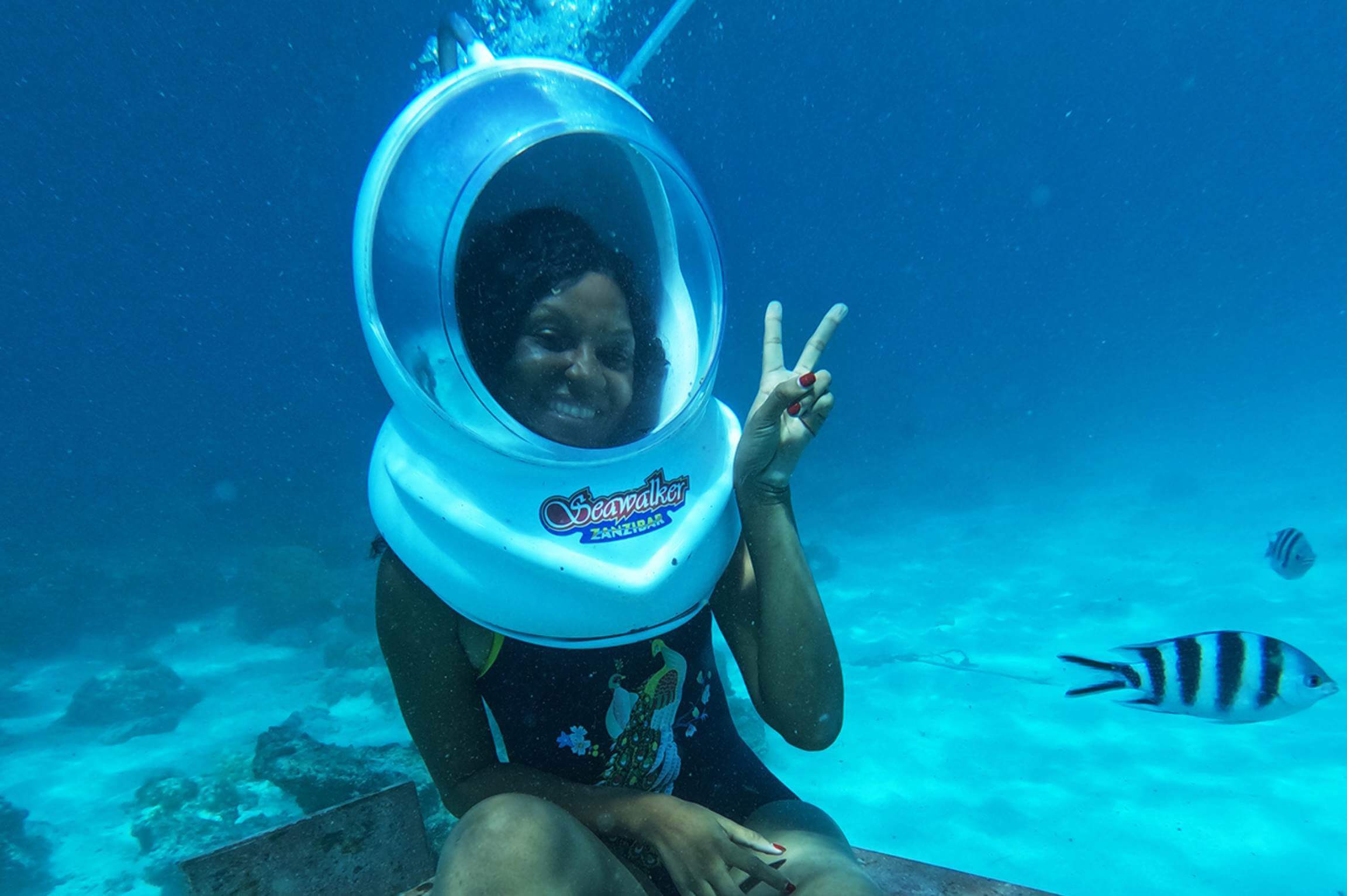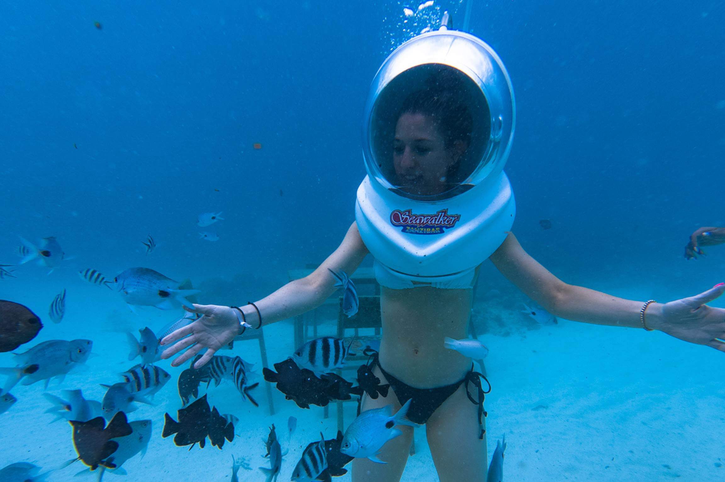 Ervaar de onderwaterwereld van Zanzibar op een compleet unieke manier door over de zeebodem te wandelen. Tijdens deze kun je het heldere turquoise water, de tropische vissen en het levendige koraalrif verkennen zonder dat je duikervaring nodig hebt. Met een speciale helm die lucht toevoert, daal je veilig af naar de zeebodem en geniet je van een onvergetelijk uitzicht in de Indische Oceaan.